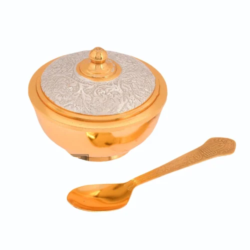 German Silver And Gold Plated Bowl With Lid supari bowl
