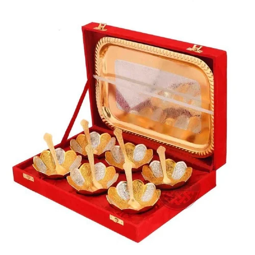 German silver & gold plated bowl set of 13 pc